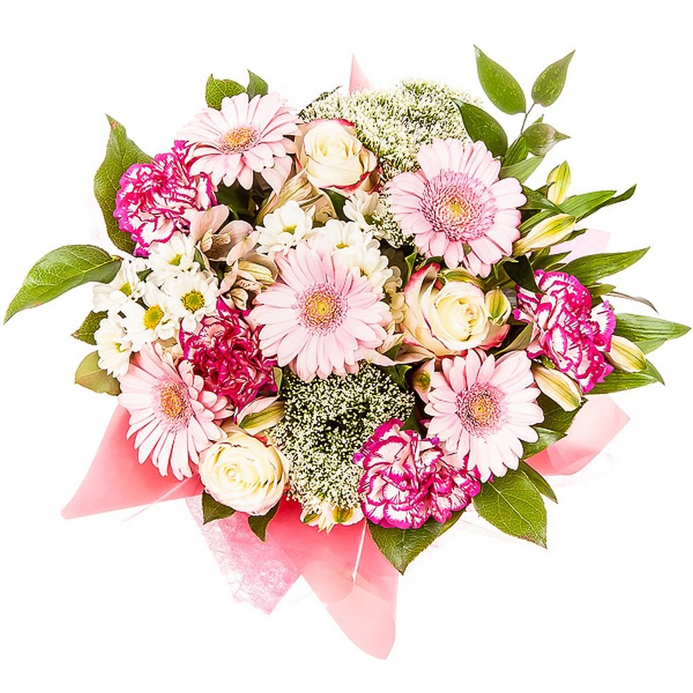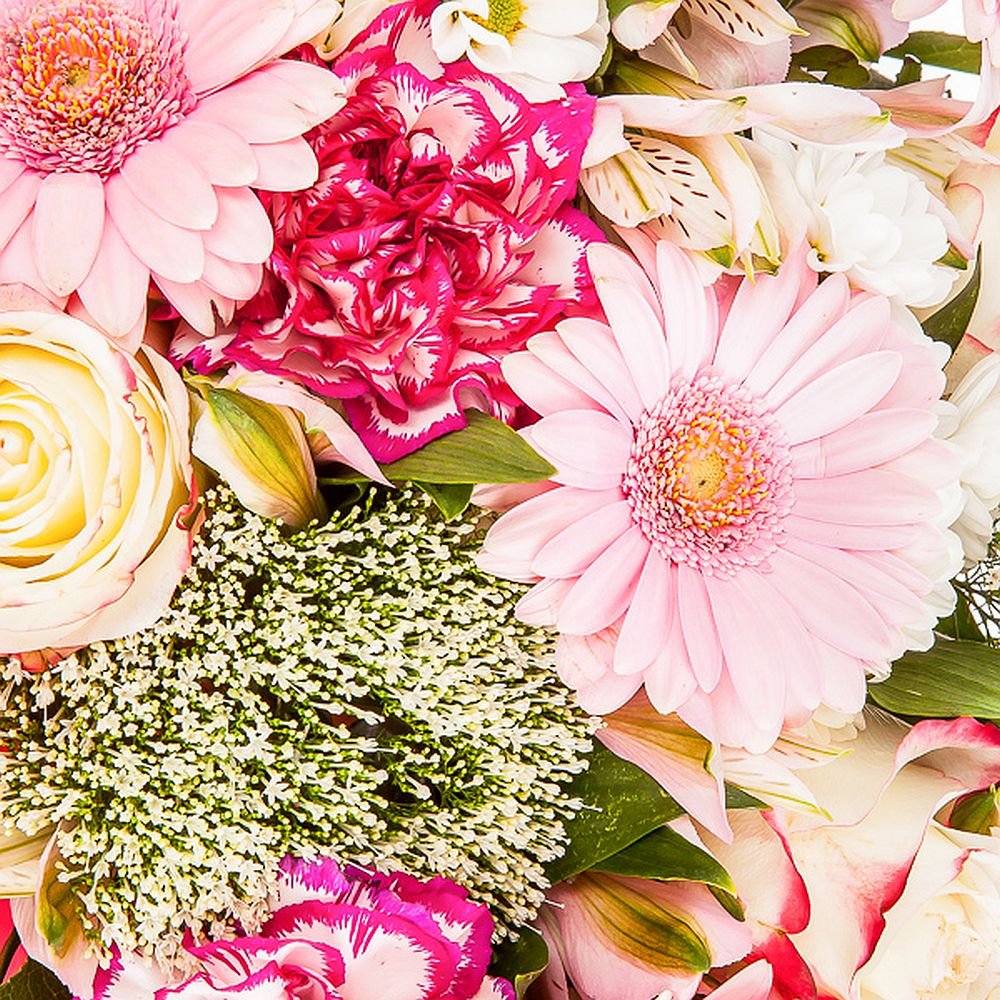 | Exkluzivní | 7 ks karafiát, 7 ks růže, 7 ks gerbera mini, 4 ks santini, 3 ks gypsophila, 4 ks alstromeria, manžeta, mašle a dekorativní zeleň (italský ruscus, salal) |